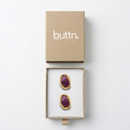 Das Ametra Knopfcover aus der Buttn Classic Collection verwandelt schlichte Knöpfe im Handumdrehen in einen ausdrucksstarken Blickfang. Das organische Design mit marmorierter Oberfläche in tiefem Violettton, eingefasst in eine goldfarbene Form, setzt einen modernen, hochwertigen Akzent und verleiht Blusen, Hemden, Blazern oder Kleidern eine elegante, individuelle Note.